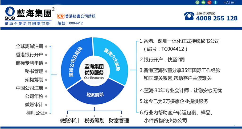 藍(lán)海集團(tuán)成立13年來,專注于離岸公司注冊、銀行開戶、年檢、做賬審計報稅、商標(biāo)專利申請,海外融資及資產(chǎn)管理,企業(yè)海外經(jīng)營策劃,幫助中小微企業(yè)實現(xiàn)國際技術(shù)項目合作、股權(quán)買賣等一站式服務(wù)。