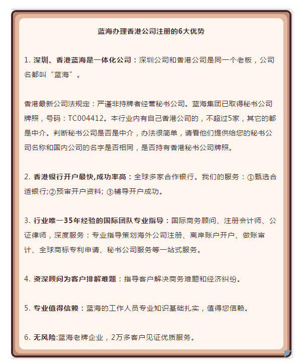 所以,選擇具有深港一體化專業(yè)的秘書公司,這一點很重要,這決定了后續(xù)服務的質量。,千萬不要因為省幾百甚至幾十元的費用而因小失大!擦亮眼睛才是關鍵!